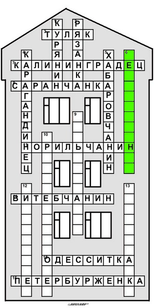 По вертикали: 6. Как именуется житель г.Кемерово? Варианты: а). КЕМЕРОВЧАНИН б). КЕМЕРОВЕЦ в). КЕМЕРОВИЧ г). КЕМЕРОВЧАНЕЦ - - - - - - - - - - - - - - - - - - - - - - - - - - - - - - - - - - |